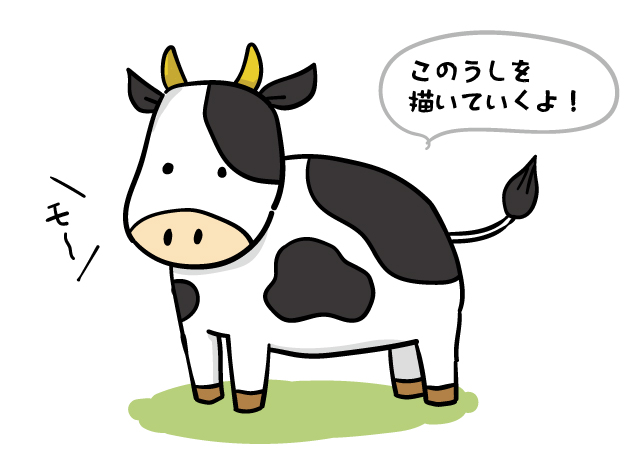 今日は、簡単な形を組み合わせて、だれでも描けるうしの描き方をご紹介します。