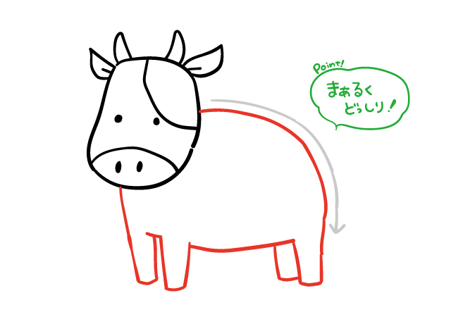 こうすることで、うしのどっしりとした印象も出るし、イラスト全体にまとまりが出やすくてバランスが取りやすくなります。
